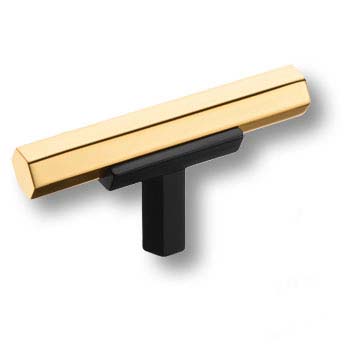 Ручка кнопка 74-Matt Black-Gold, материал Замак, цвет Чёрный, отделка Золото Черный, 32*12*60 мм